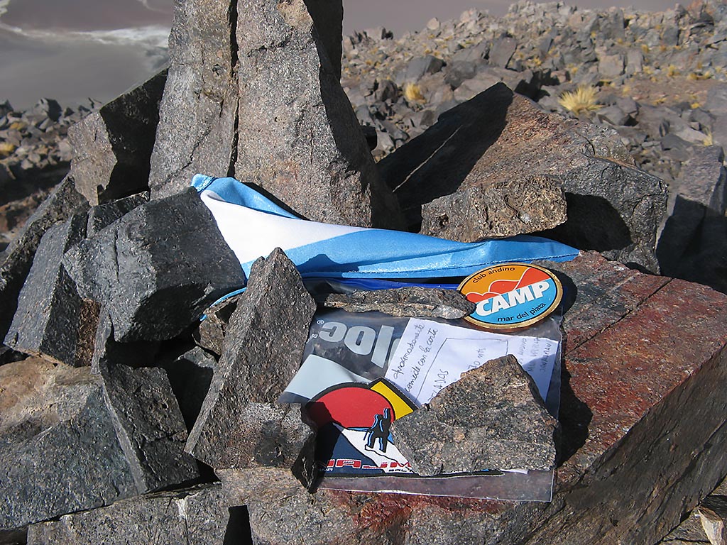 Testimonio en la cumbre del cerro las Peladas (4.645 mts)