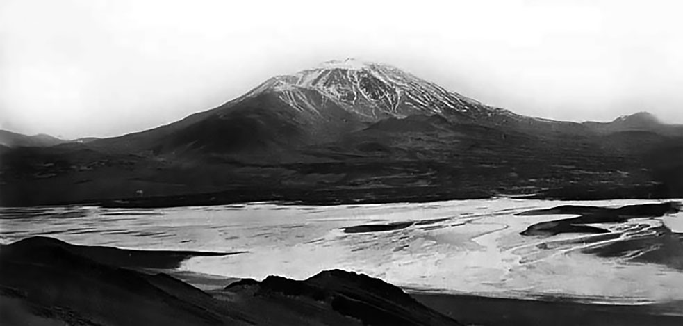 Imagen del Incahuasi tomada por Penck desde la Laguna de San Francisco luego del ascenso del nevado del mismo nombre Unos dias despues lograria el primer ascenso moderno del Incahuasi