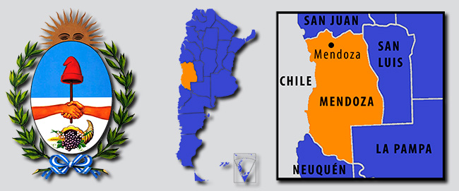UBICACIÓN: Se encuentra ubicada en el centro-oeste de la República Argentina, limita al norte con la provincia de San Juan; al este con la provincia de San Luis; al sur con las de La Pampa y Neuquén; al oeste, con la República de Chile.