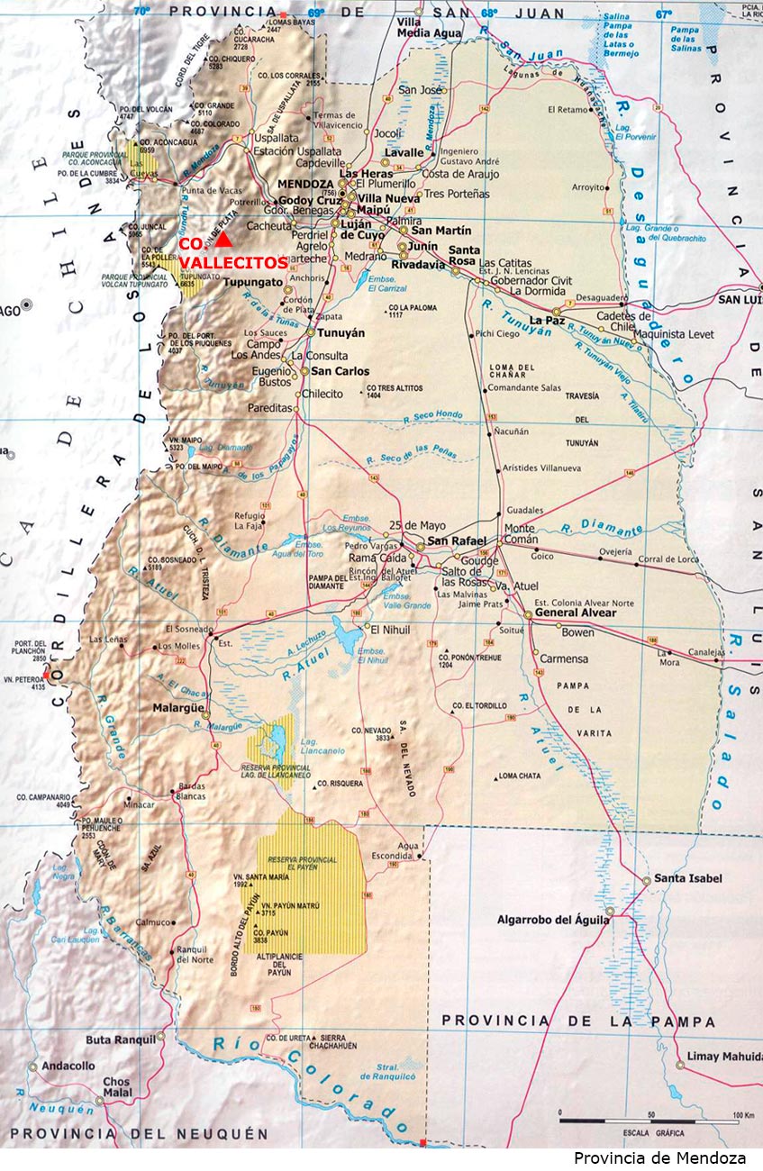 Ubicación del Cerro Vallecitos en la Provincia de Mendoza, Argentina